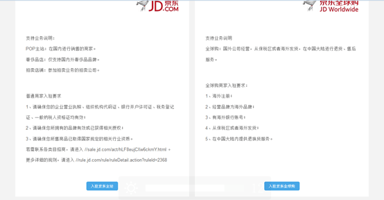 4、選擇類(lèi)型,國(guó)內(nèi)商家選擇“入駐京東主站”、國(guó)外商家選擇“入駐京東全球購(gòu)”