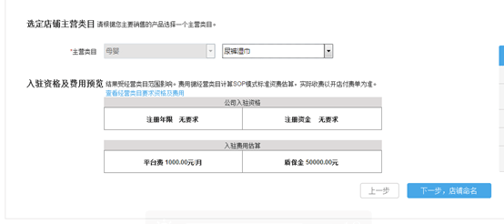 選擇主營(yíng)二級(jí)類(lèi)目,點(diǎn)擊下一步店鋪命名