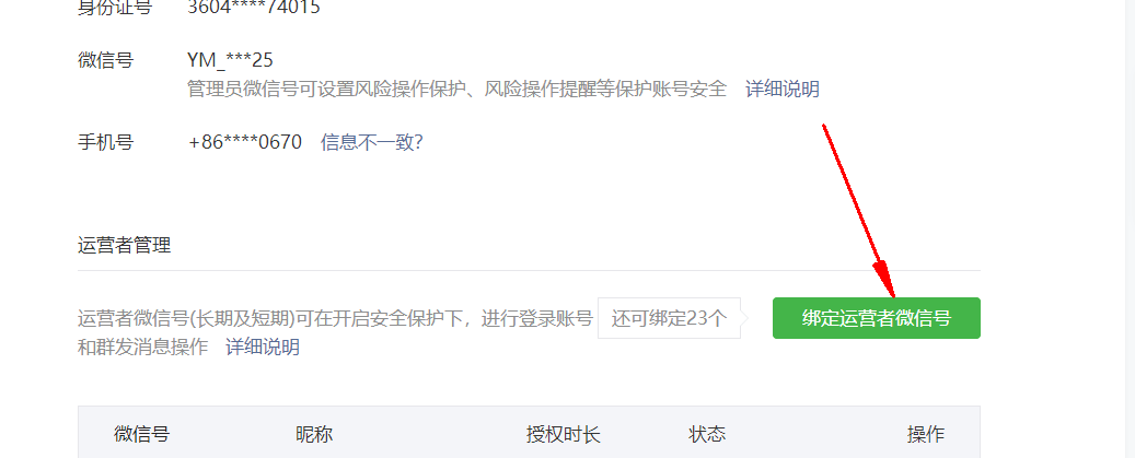 5.進(jìn)入后,單擊選擇綁定運(yùn)營(yíng)者微信號(hào)