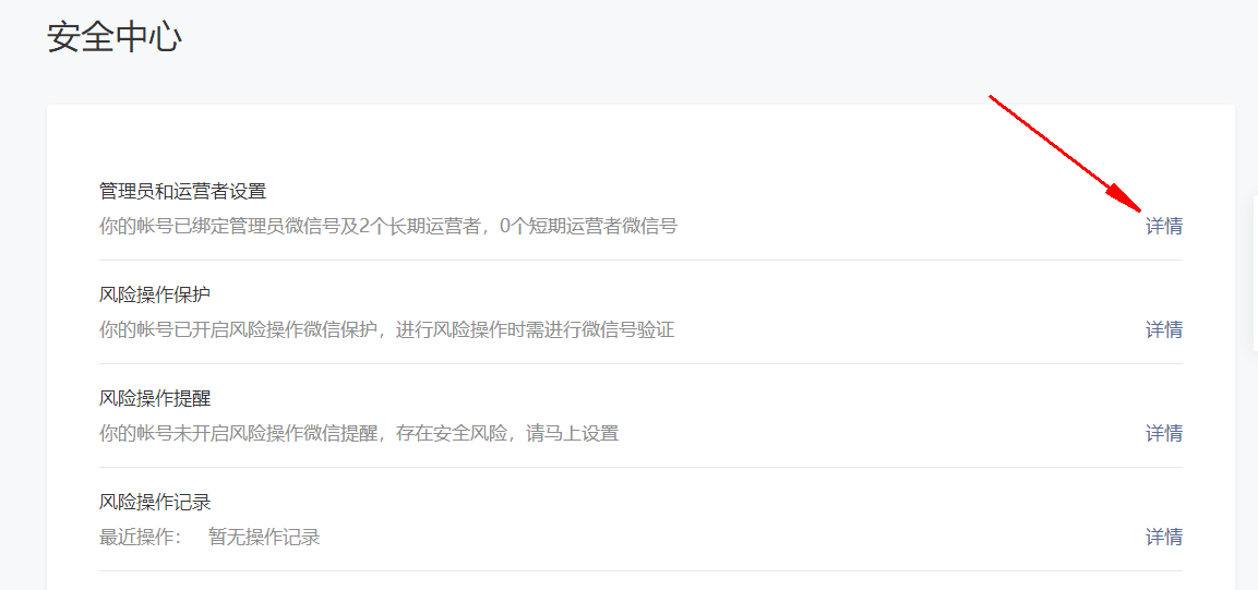 4.右側(cè)出現(xiàn)安全中心相應(yīng)內(nèi)容,選擇管理員和運(yùn)營(yíng)者設(shè)置,點(diǎn)擊右側(cè)詳情